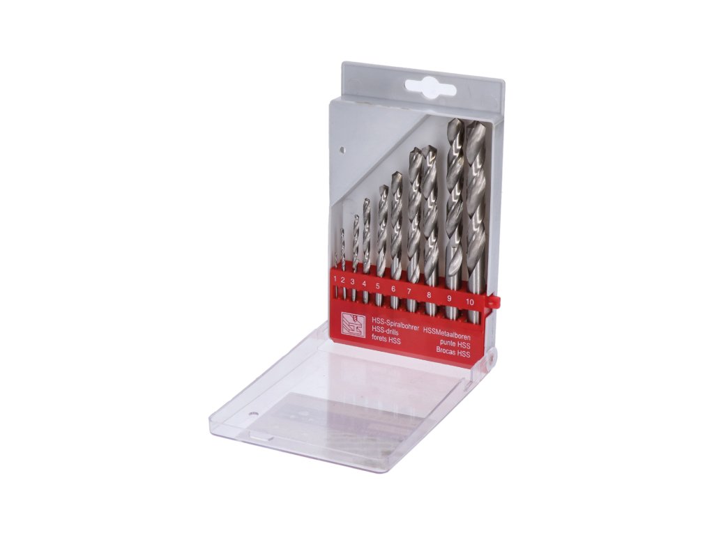 sada vrtákov do kovu 10 dielna - HOBBY, balenie obsahuje vrtáky: 1mm, 2mm, 3mm, 4mm, 5mm, 6mm, 7mm, 8mm, 9mm a 10mm