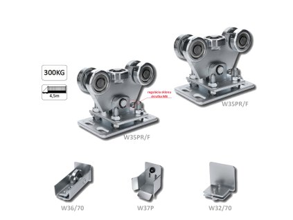 Samonosné systémy pre posuvné samonosné brány. Vodiace profily, vozíky, dorazy ale aj samostatné kolieska pre vozíky. Oceľové aj polyamidové kolieska. V ponuke máme samostané položky ale aj kompletné sady.
