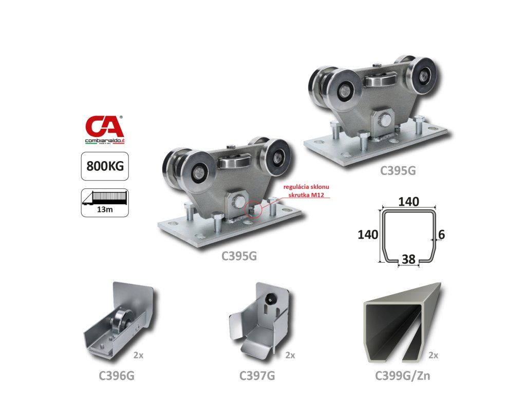 GRANDE-Klasik samonosný systém 140x140x6mm posuvnej brány do 800kg/13m otvor (C399G/Zn 2x 6m pozinkovaný profil, C395G Klasik 2ks, C397G 2ks, 2x C396G 2ks), bežná prevádzka