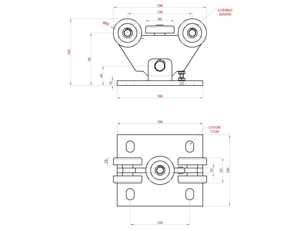 PICCOLO-Klasik samonosný systém 69x69x4mm posuvnej brány do 200kg/4,5m otvor (C399P-4/Fe 1x6m čierný profil, C395KIT/P-K 1ks) intenzívna prevádzka