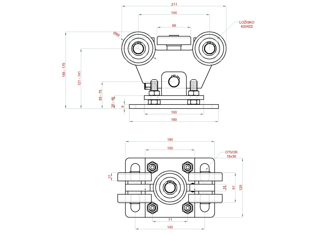 Samonos do 5 m/400 kg, profil s otvormi 80 × 80 × 5 mm, Zn