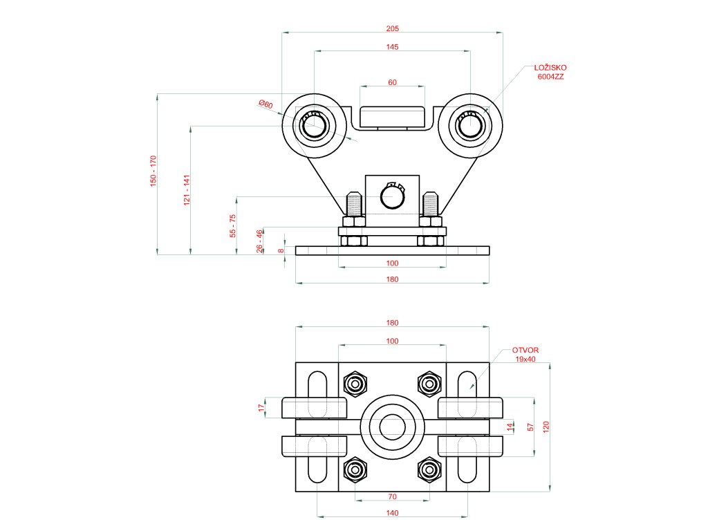 Samonosný systém 70x70x4mm posuvnej brány do 200kg/4,5m otvor (W39/70Zn 6m pozinkovaný profil, 1xW-SET70/F)