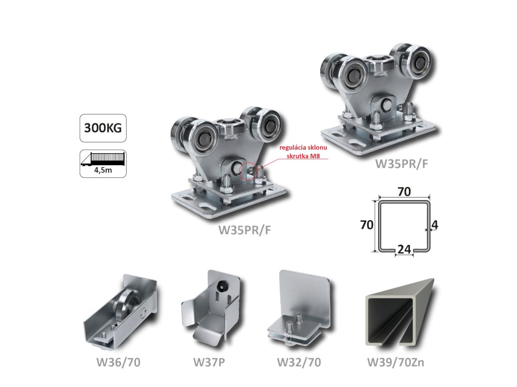 Samonosný systém pre posuvné brány do 200kg, pozinkovaný profil 70x70x4mm W39/70Zn 6m, 1 x W-SET70F