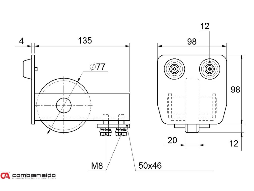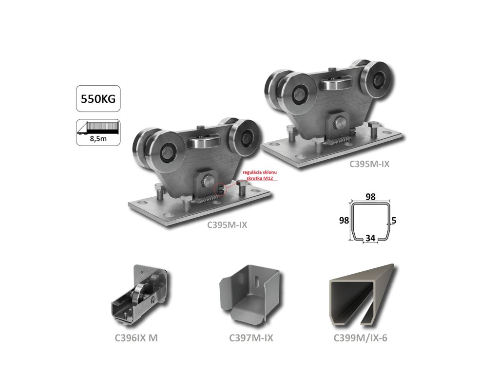 MEDIO-Klasik nerezový samonosný systém 98x98x5mm pre posuvné brány do 500kg/8,5m otvor (C399M-IX 1x6m nerezový profil, C395M/IX 2ks, C397M-IX 1ks, C396M-IX 1 ks), nerez AISI304 bez povrch. úpravy