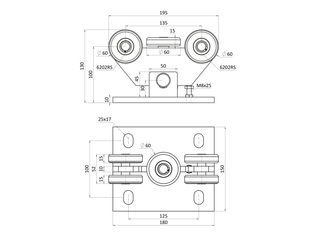 Nerezový vozík PICCOLO do profilu (67x67mm) pre samonosné brány do 200kg/ otvor: 4.5m, nerez bez povrchovej úpravy
