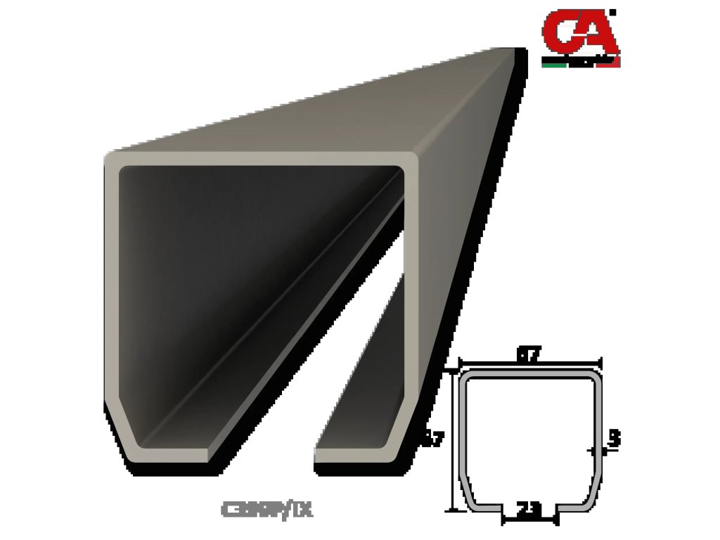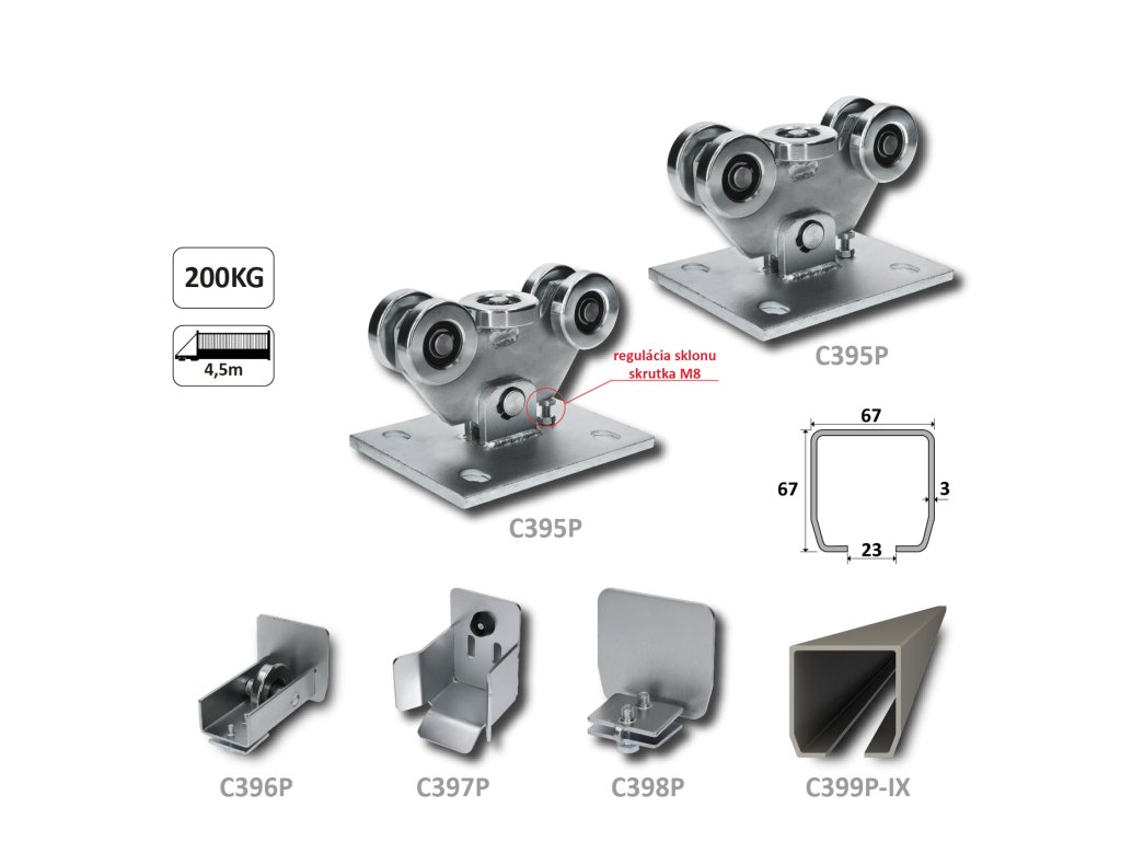PICCOLO-Kombinovaný (Nerez/Pozink) samonosný systém 67x67x3mm pre posuvné brány do 200kg/4,5m otvor (C399P-IX 1x6m nerezový profil, C395P 2ks, C397P 1ks, C396P 1ks, C398P 1ks)