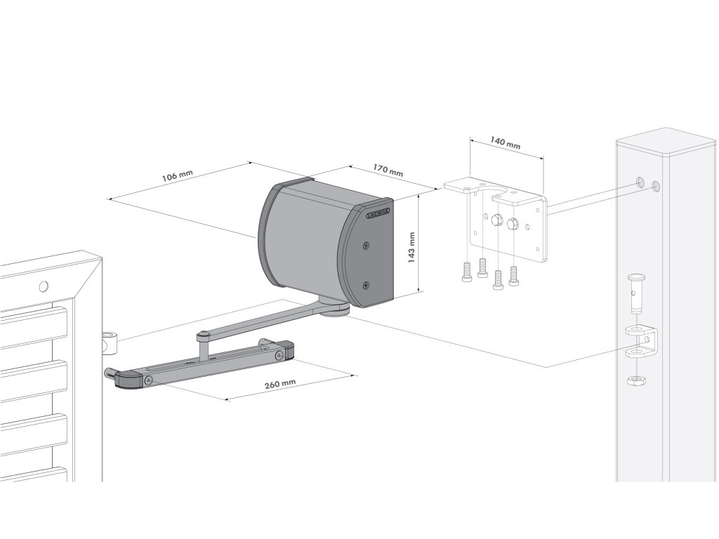 LOCINOX® PANTHER hydraulický zatvárač pre krídlové brány do 150 kg / 1.5 m, otvárateľný do 120°
