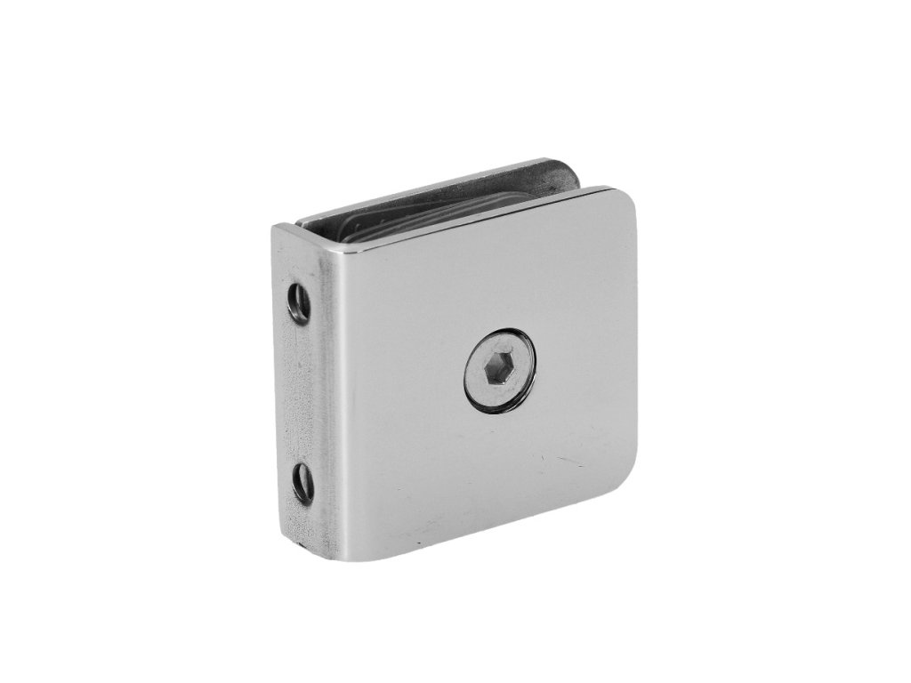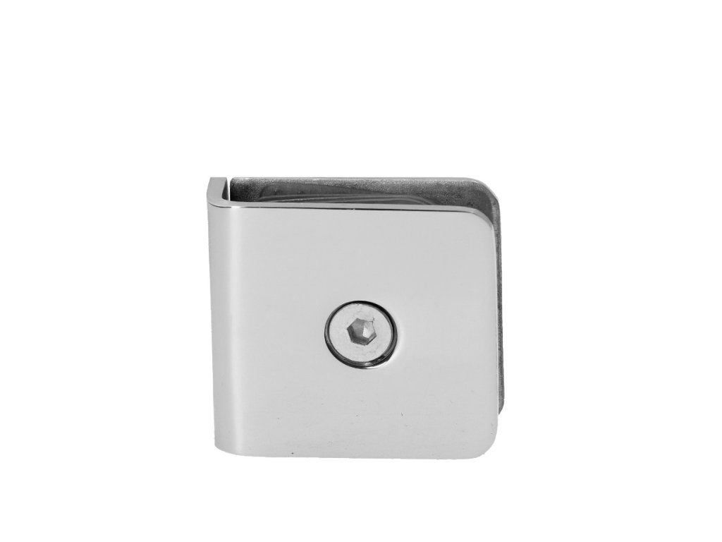 svorka skla na sklenený dverový systém, medzi stenu a sklo, 50x45x16mm, hrúbka skla 8-10mm, leštená nerez AISI304