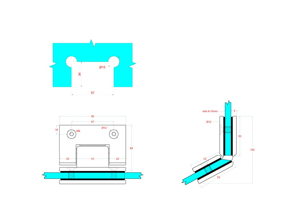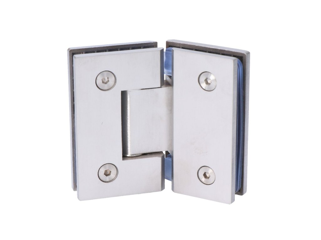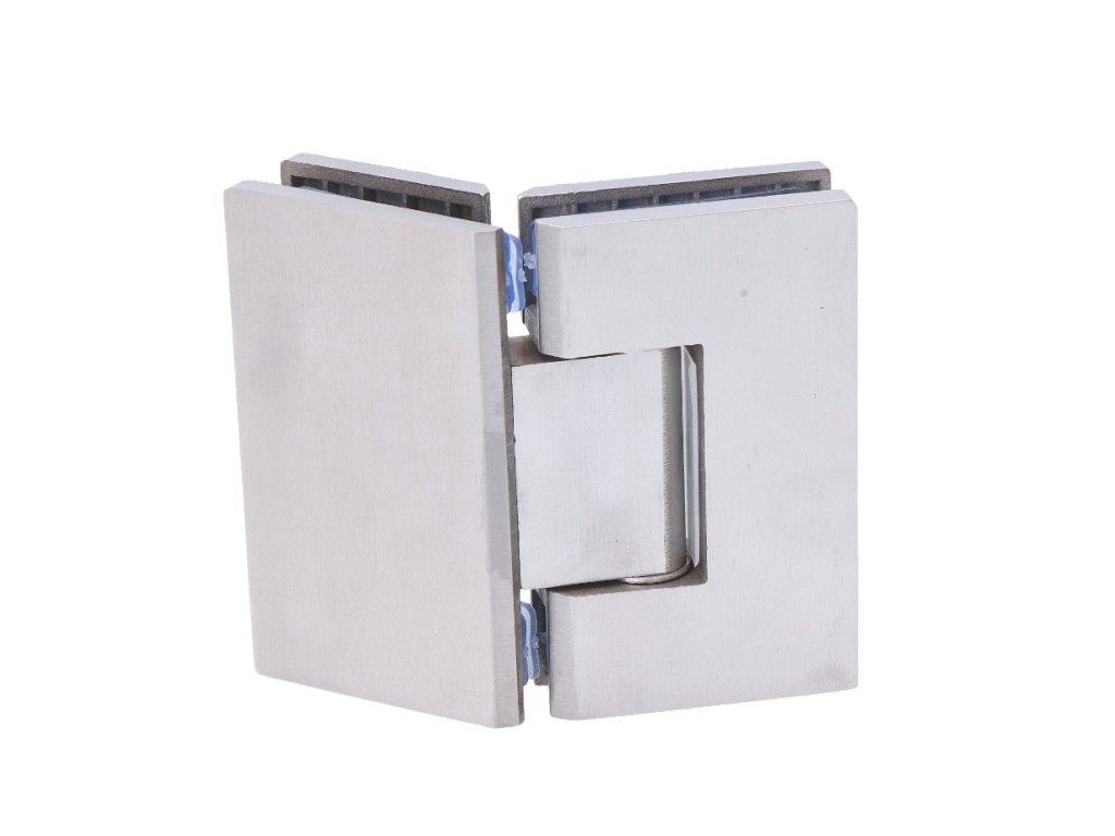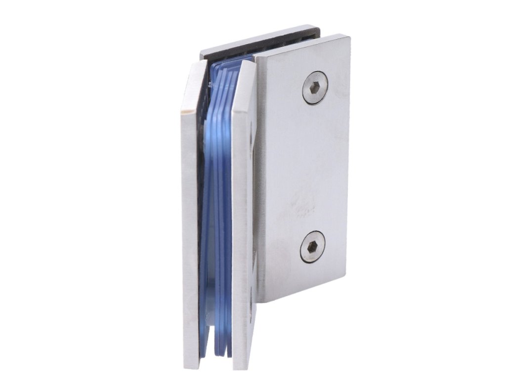 záves na sklenený dverový systém, medzi sklo a sklo 135°, 90x100mm, hrúbka skla 8-10mm, brúsená nerez K320/AISI304, samozatváranie +-15° a samozastavenie +-90°-0°Dodatočné parametre