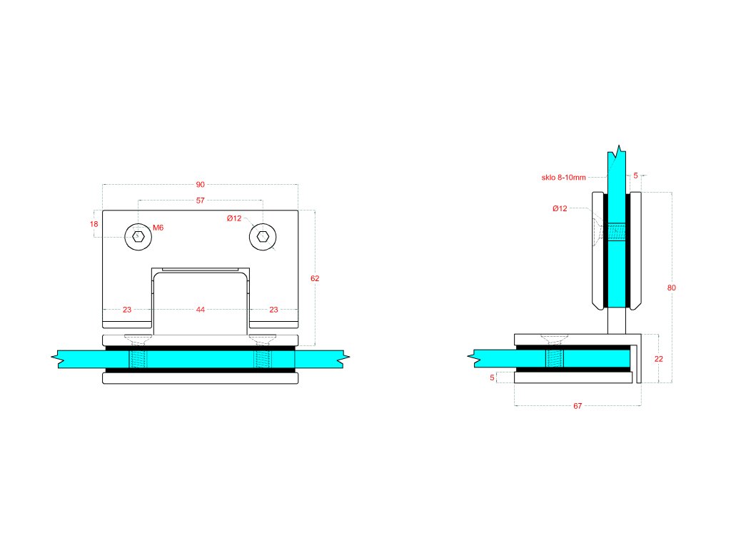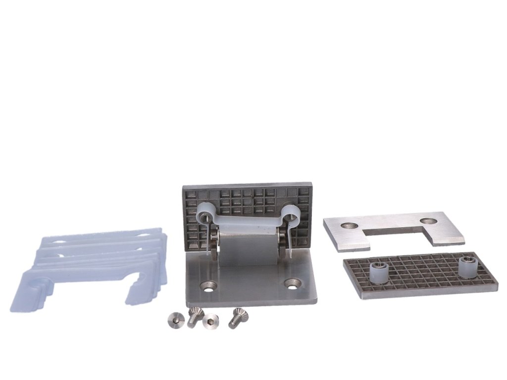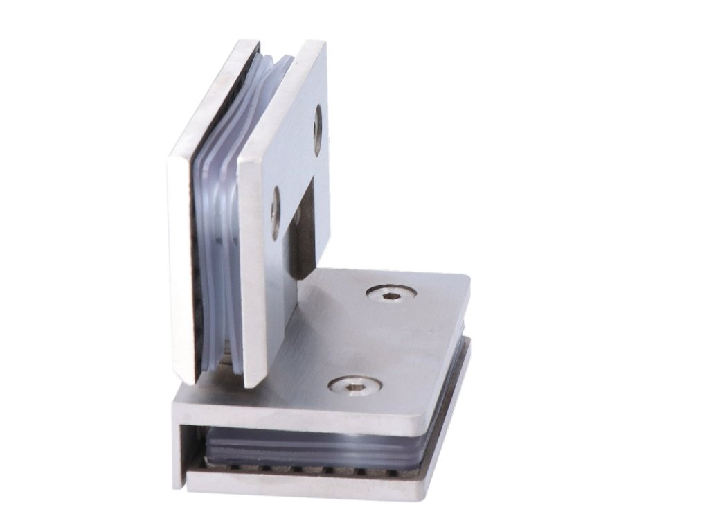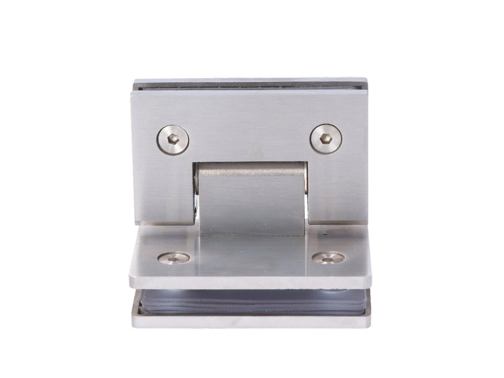 záves na sklenený dverový systém, medzi sklo a sklo 90°, 90x80mm, hrúbka skla 8-10mm, brúsená nerez K320/AISI304, samozatváranie +-15° a samozastavenie +-90°-0°Dodatočné parametre