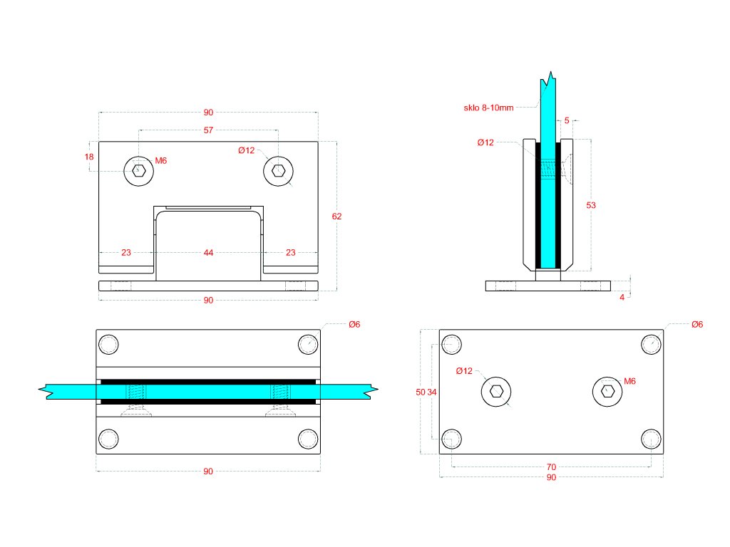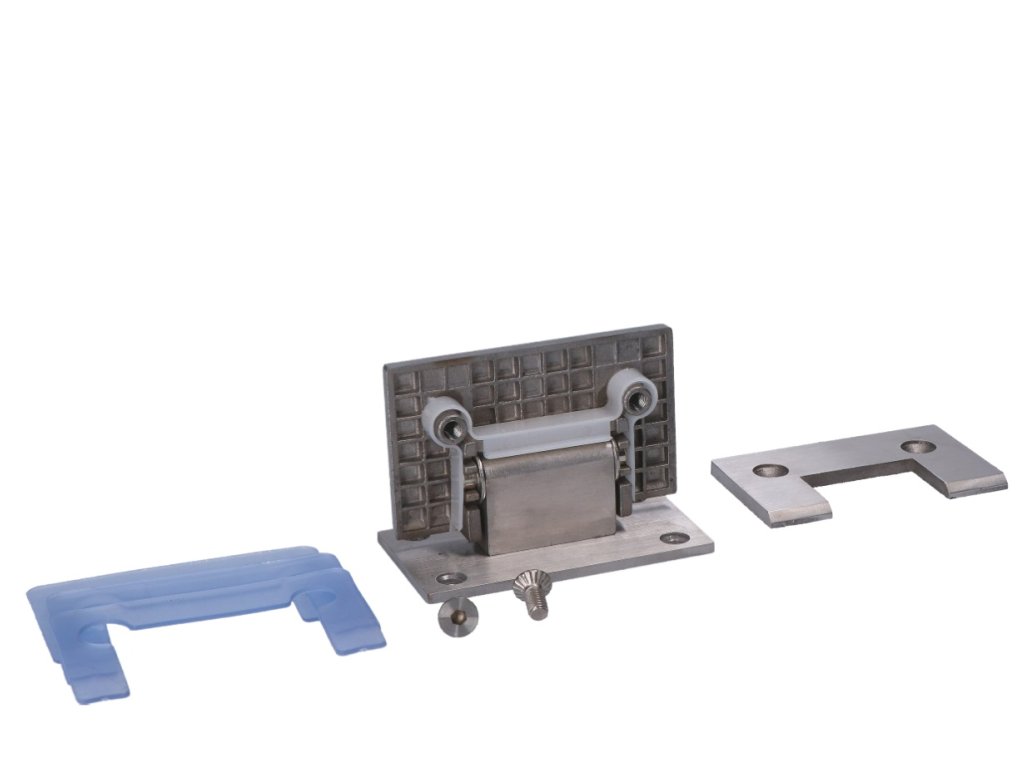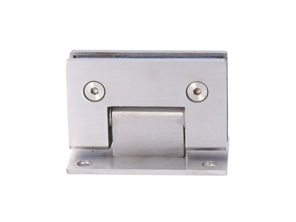 záves na sklenený dverový systém, medzi stenu a sklo, 90x53x62mm, hrúbka skla 8-10mm, brúsená nerez K320/AISI304, samozatváranie +-15° a samozastavenie +-90°-0°Dodatočné parametre