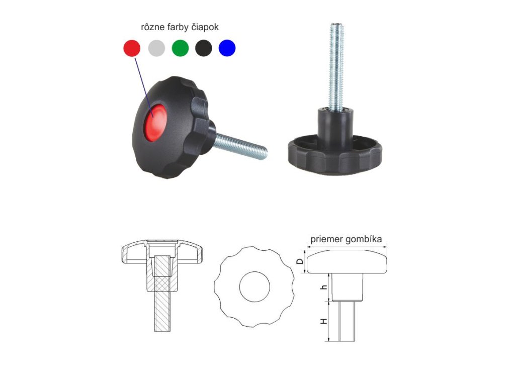 Aretačná skrutka, ø-50mm;M8x18mm;H-18mm, D-15mm;h-17, Polyamid - odolná voči poveternostným vplyvom