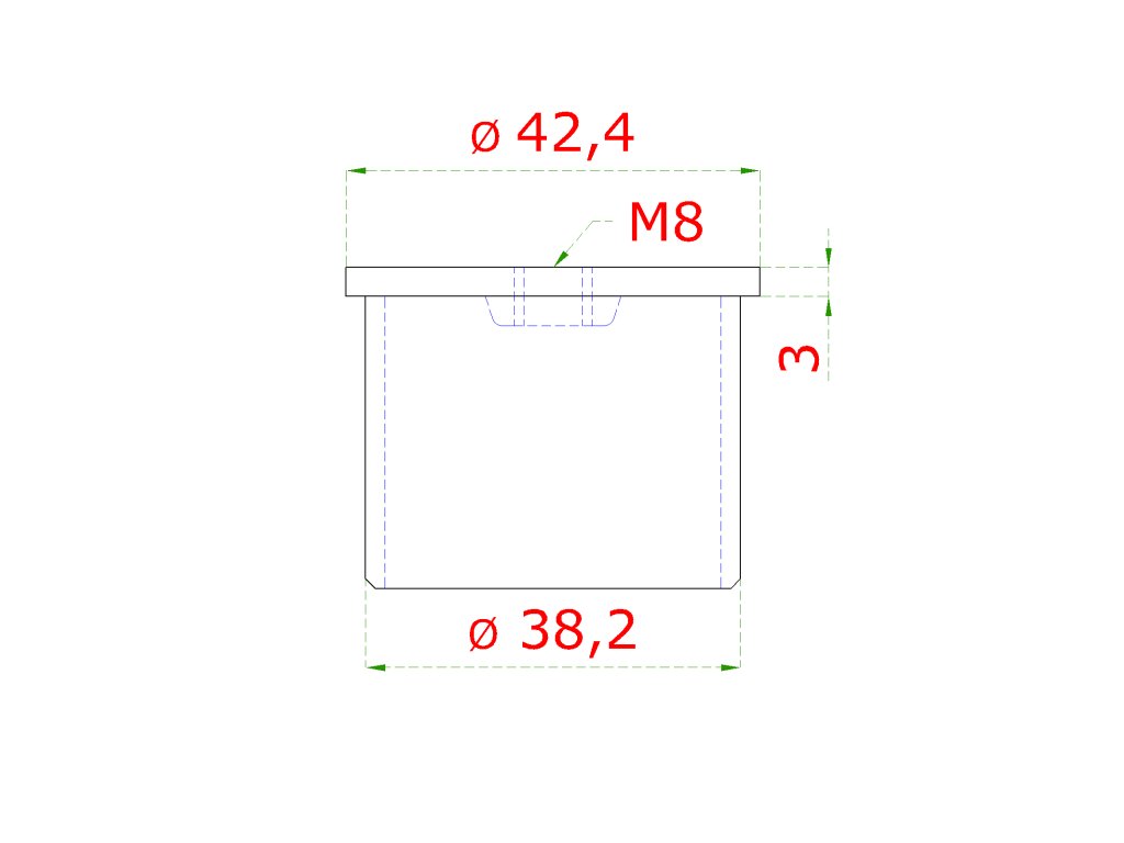 spodok držiaka madla (závit M8) na trubku ø 42.4mm, brúsená nerez K320 /AISI304, na nalepenieDodatočné parametre