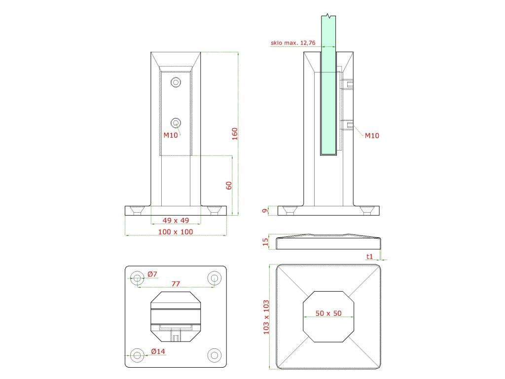 nerezové vrchné kotvenie pre sklenenú výplň max. 12.76mm, brúsená nerez K320 /AISI316Dodatočné parametre