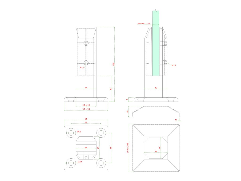nerezové vrchné kotvenie pre sklenenú výplň od 10mm do 12mm, brúsená nerez K320 /AISI304