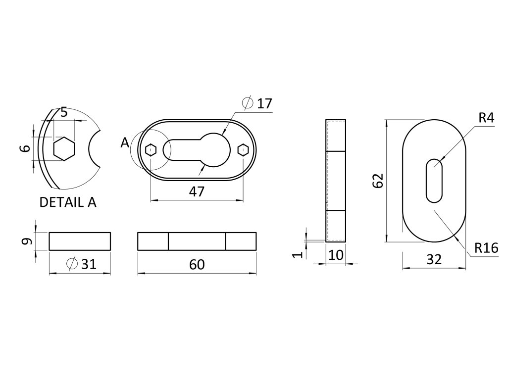 Oválna rozeta na cylindrickú vložku (62x32mm), bal.: 1 pár, brúsená nerez K320 /AISI304, spodná časť nerez