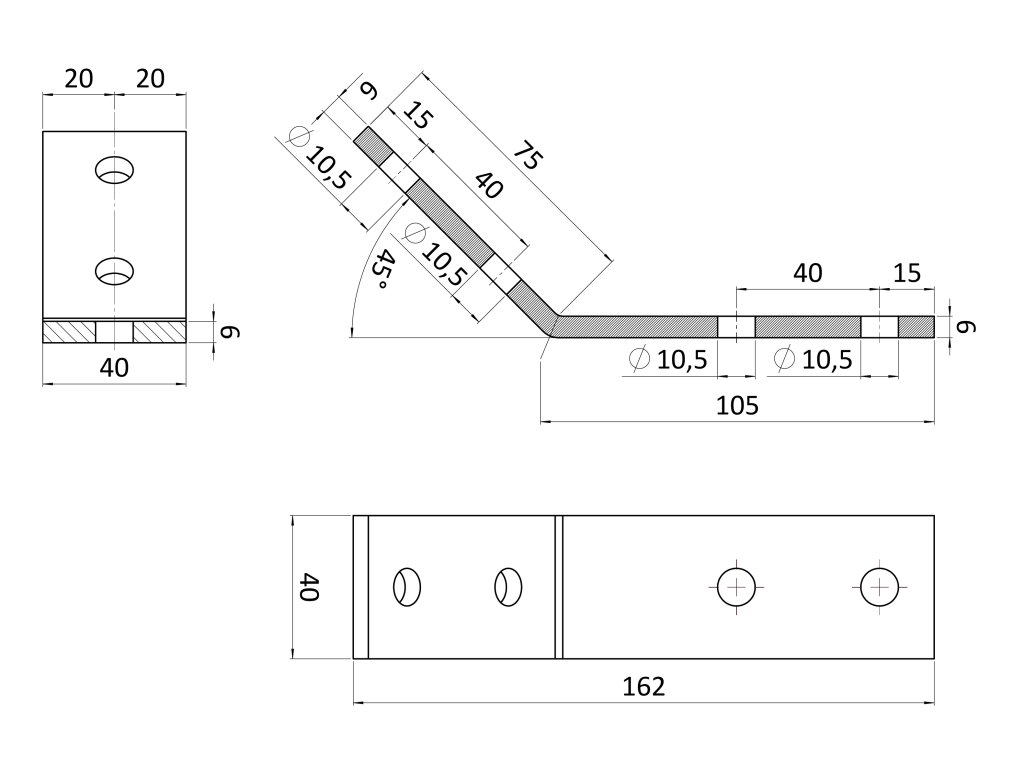 Montážny uholník 38-45° pre profily 41x21 a 41x41