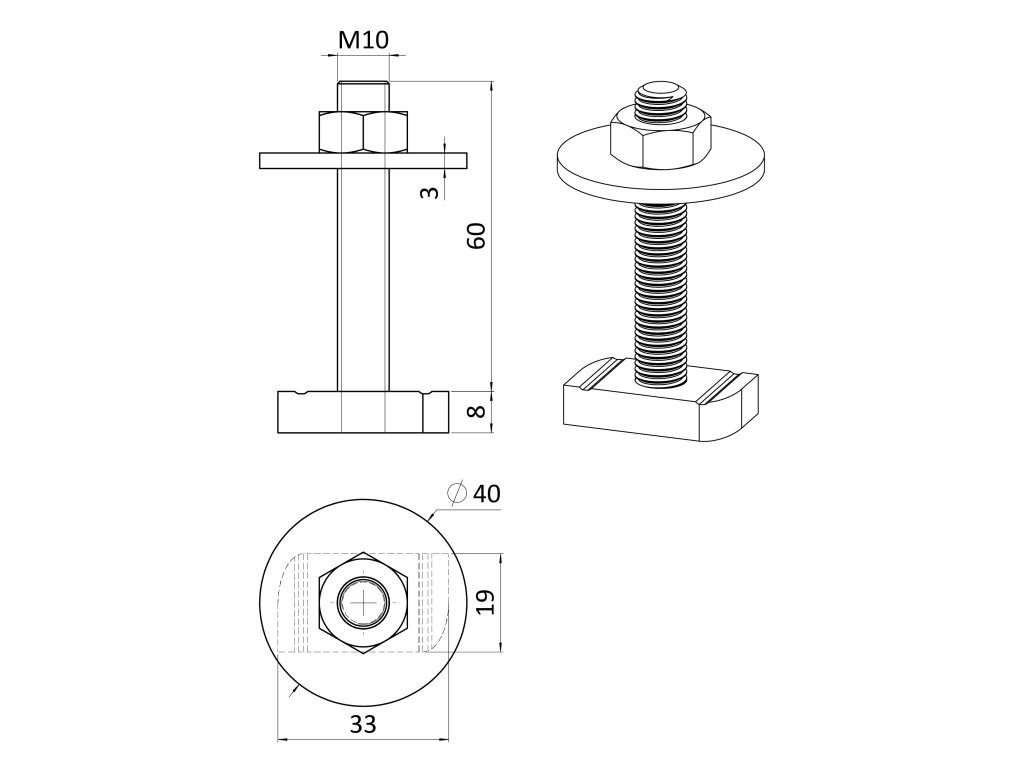 Zostava M10x60mm pre profily 41x21 a 41x41