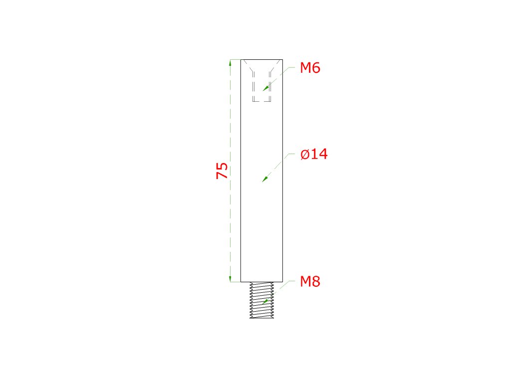 čap (vonkajší závit M8 - vnútorný závit M6, ø 14mm, L: 75mm), brúsená nerez K320 /AISI304Dodatočné parametre