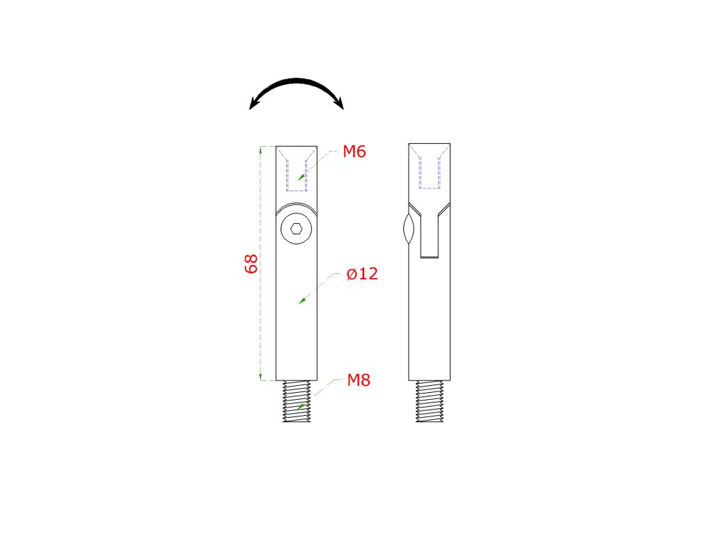 čap s kĺbom (vonkajší závit M8 - vnútorný závit M6, ø 12mm, L: 68mm), leštená nerez /AISI304Dodatočné parametre