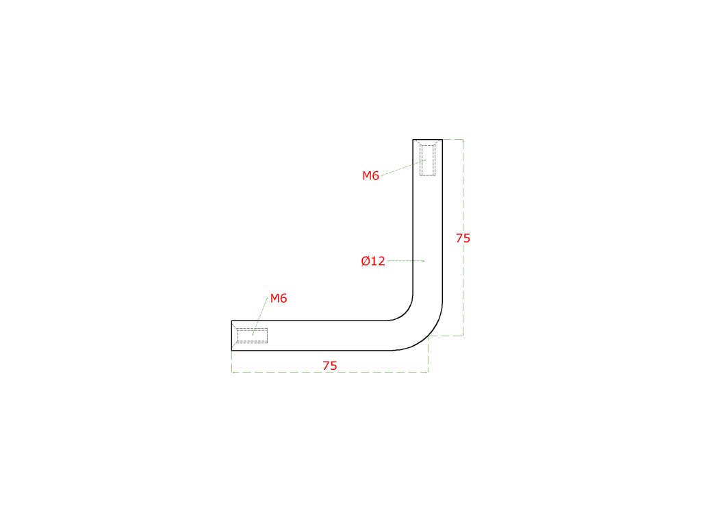 uholník (90°, 2 x vnútorný závit M6, ø 12mm L:75x75mm), brúsená nerez K320 /AISI304Dodatočné parametre