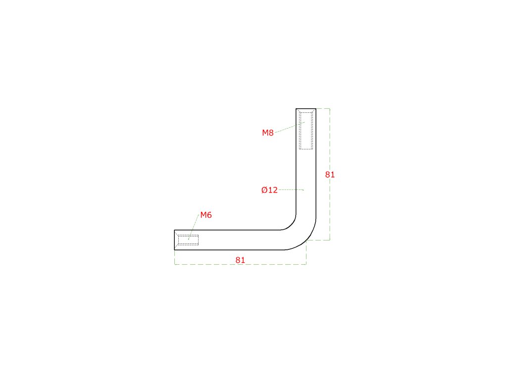 uholník (90°, vnútorný závit M6 a M8, ø 12mm L:81x81mm), brúsená nerez K320 /AISI304