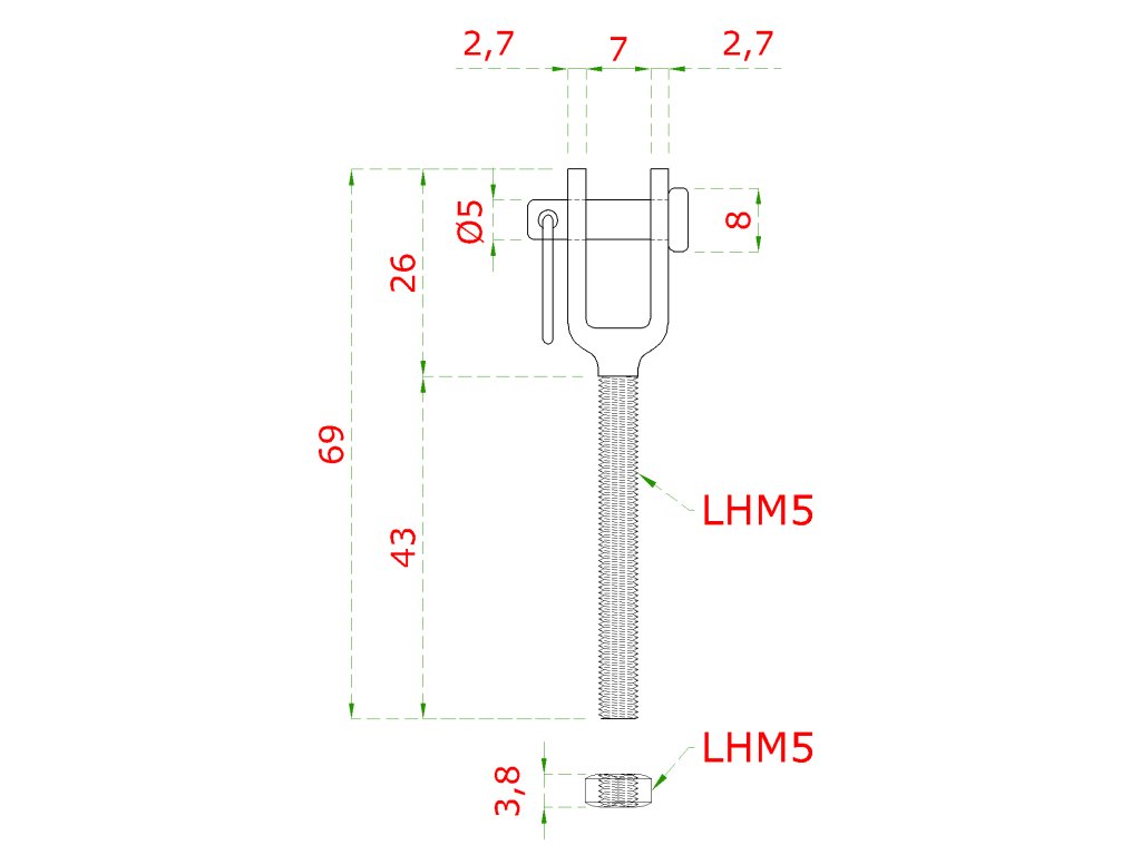 nerezový úchyt s ľavým závitom LH5, brúsená nerez K320/ AISI304Dodatočné parametre