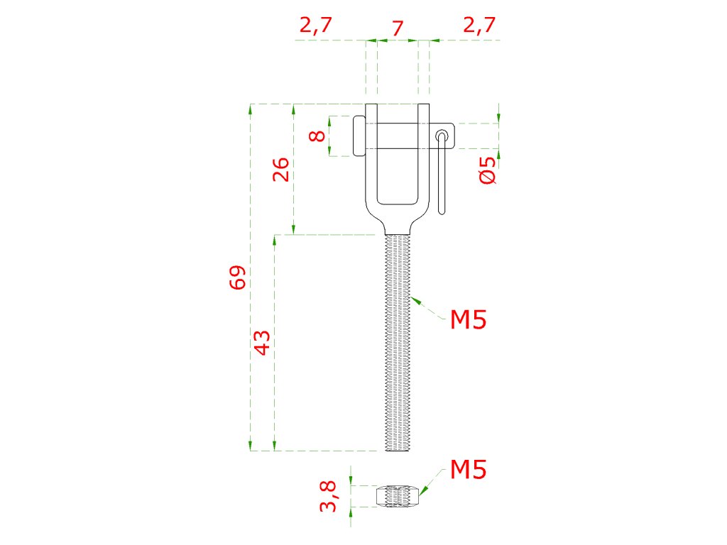 nerezový úchyt s pravým závitem M5, broušená nerez K320/ AISI304Dodatočné parametre