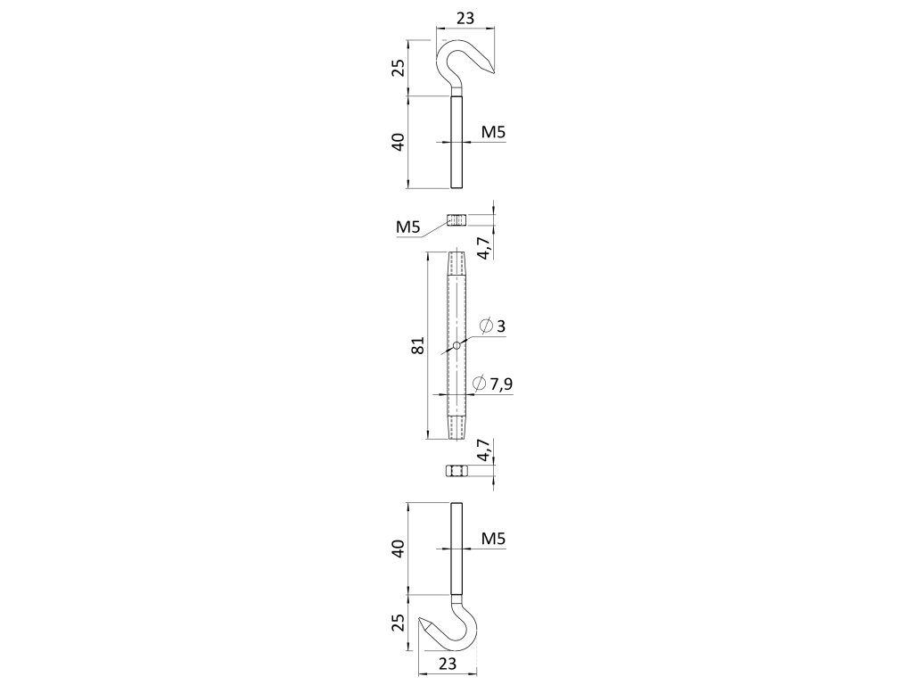 šponovák pre nerezové lanko, so závitom M5 a LH5, brúsená nerez K320 /AISI304Dodatočné parametre
