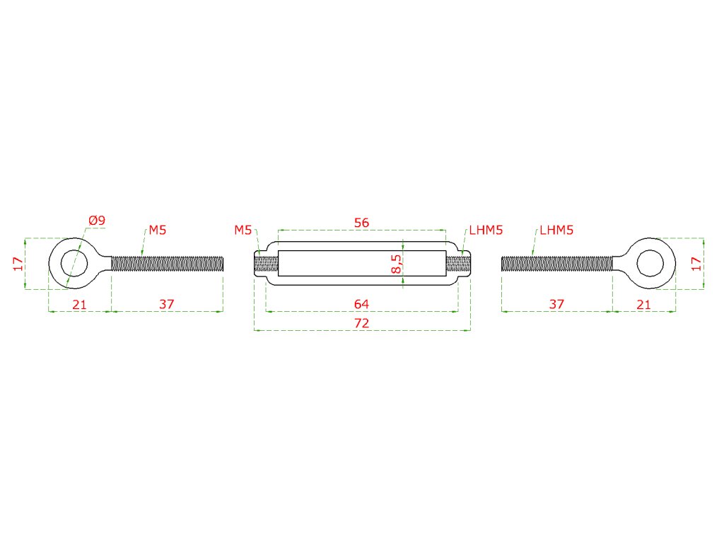 šponovák so závitom M5 a LH5, nerez AISI304Dodatočné parametre