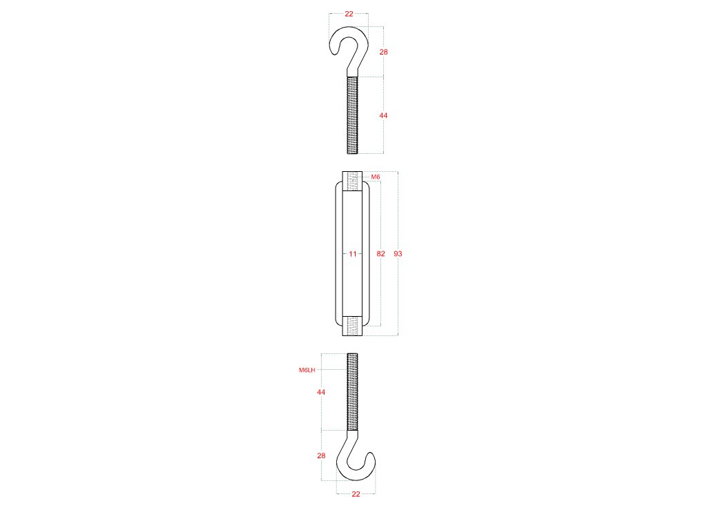 šponovák so závitom M6 a LH6, nerez AISI304Dodatočné parametre