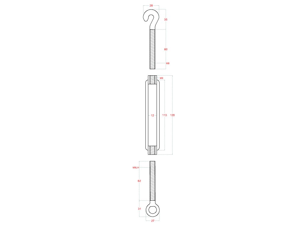 šponovák so závitom M8 a LH8, nerez AISI304Dodatočné parametre
