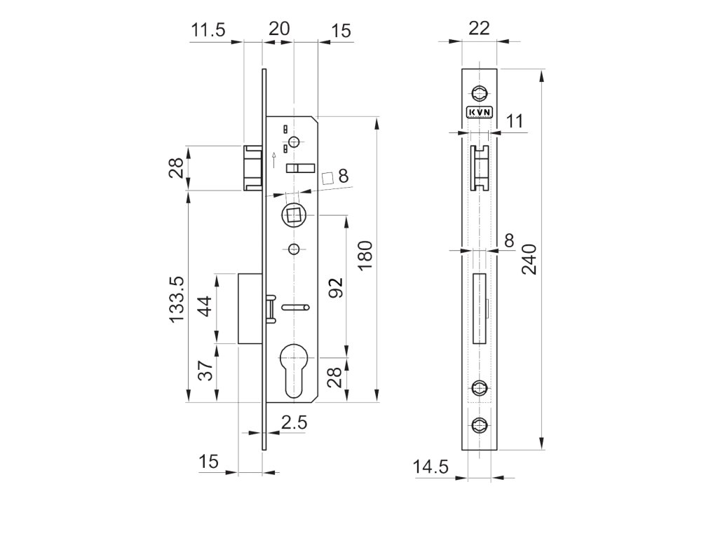 Zámok vložkový, zápust 35 mm, rozteč 92 mm, obojstranný