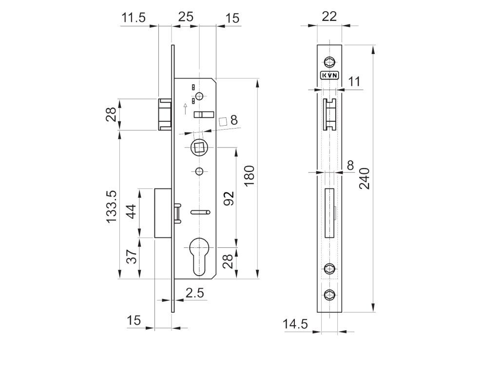 Zámok vložkový, zápust 40 mm, rozteč 92 mm, obojstranný