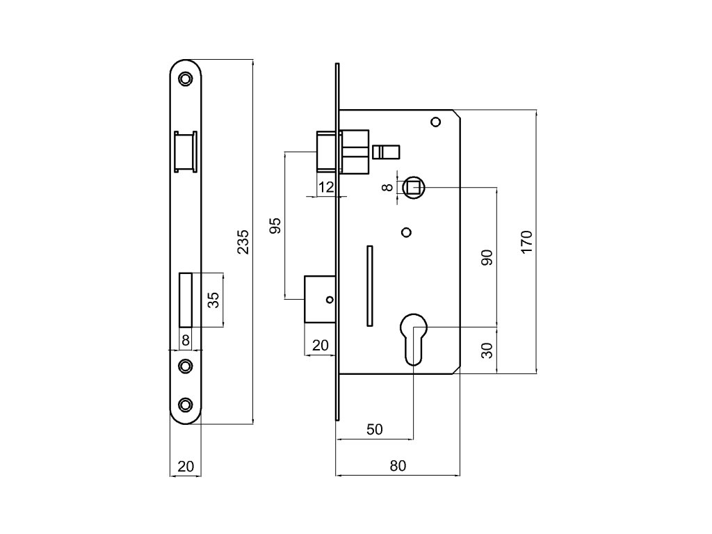 zámok vložkový, zápust 80mm, rozteč 90mm