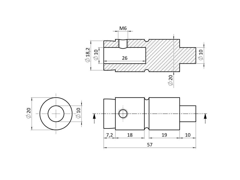 Cylinder kľučky so zaisťovacou skrutkou M6, na hriadeľ 8x8, priemer osadenia  ø18,5mm, bez povrchovej úpravy