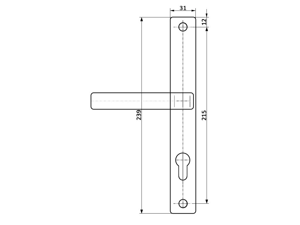 kľučka Al, rozmer štítu 239x31mm, rozteč A-90mm, B-67mm, povrchová úprava čierna farba RAL 9005, s otvorom pre stavebnú vložku, pár