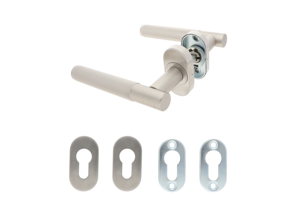 Kľučka s vrúbkovaným madlom, vrátane rozety, AL/AISI 304