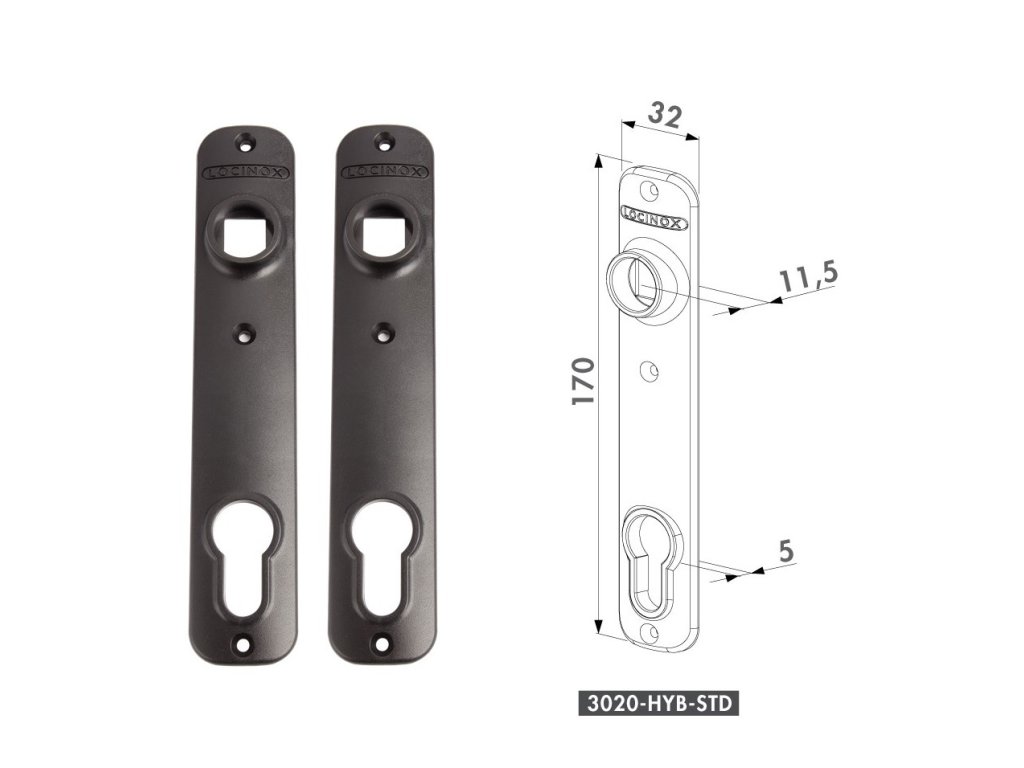LOCINOX® krycí štítok s otvorom pre kľučku a cylindrickú vložku, rozteč 92 mm, materiál: polyamid, cena za PÁR
