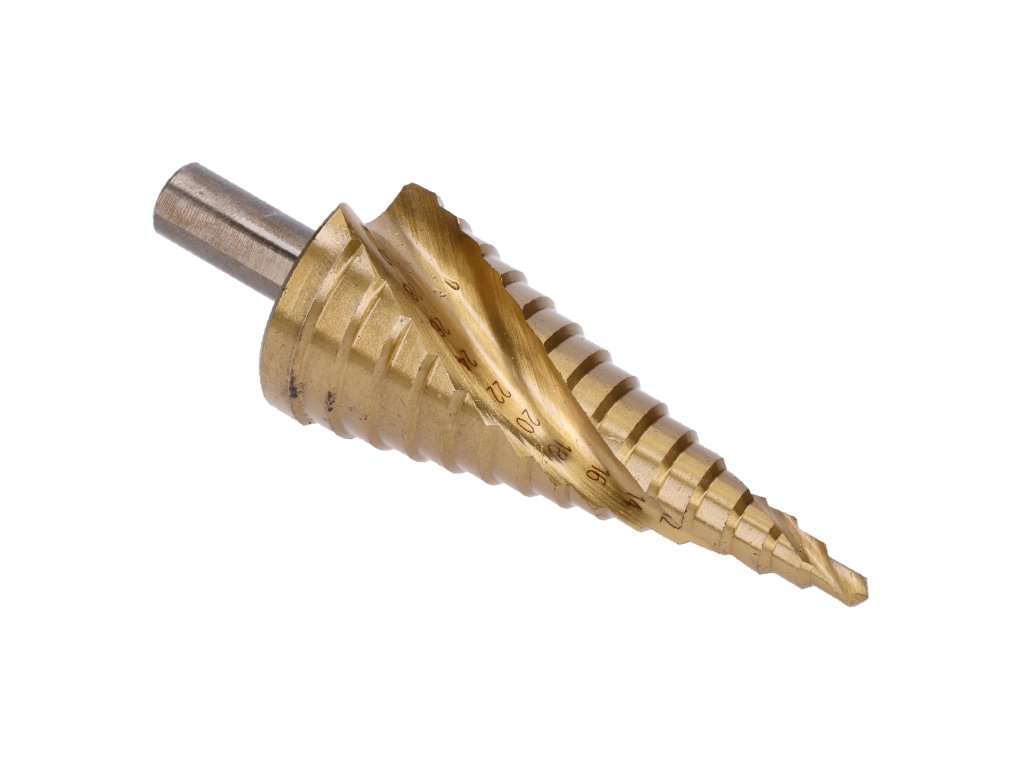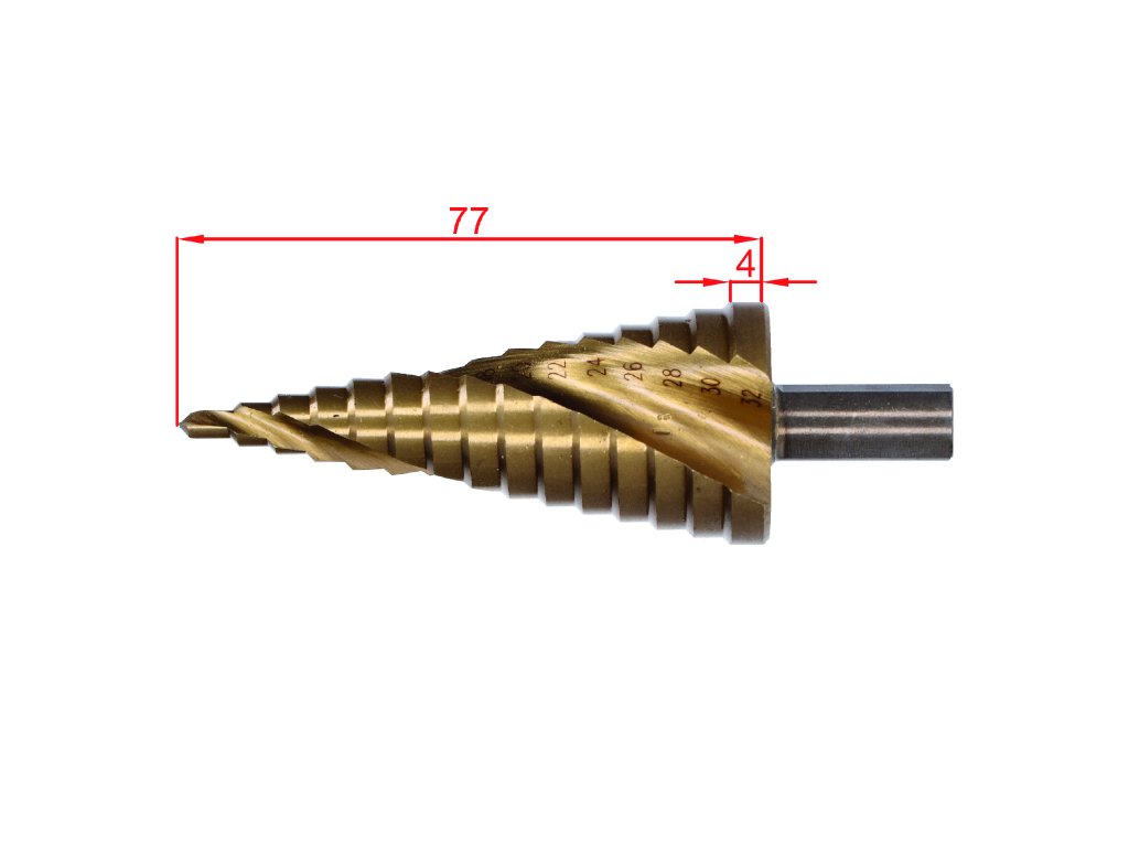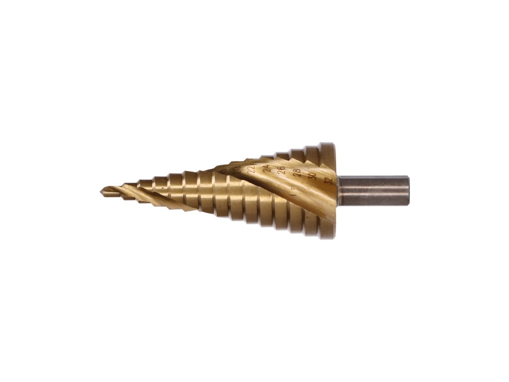 stupňovitý kužeľový vrták HSS 4341 TiN 4-32, 3 ploché bočné úchopy