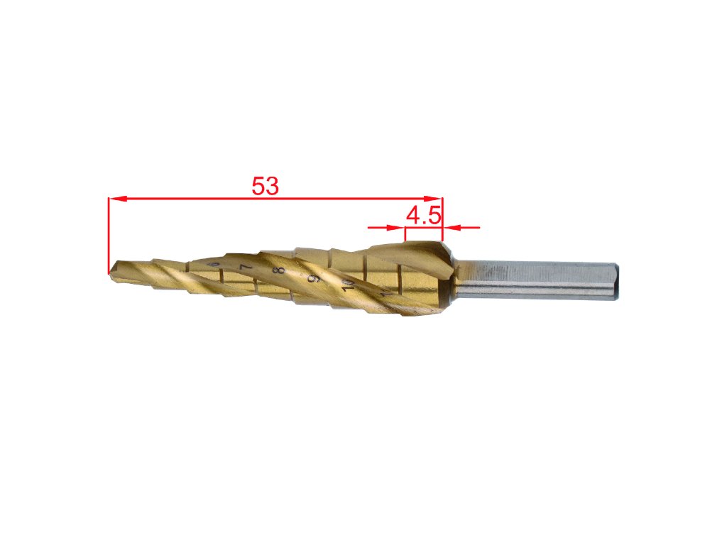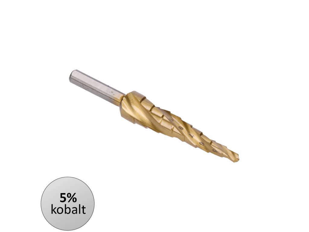 stupňovitý kužeľový vrták HSS M35 TiN 4-12, 3 ploché bočné úchopy