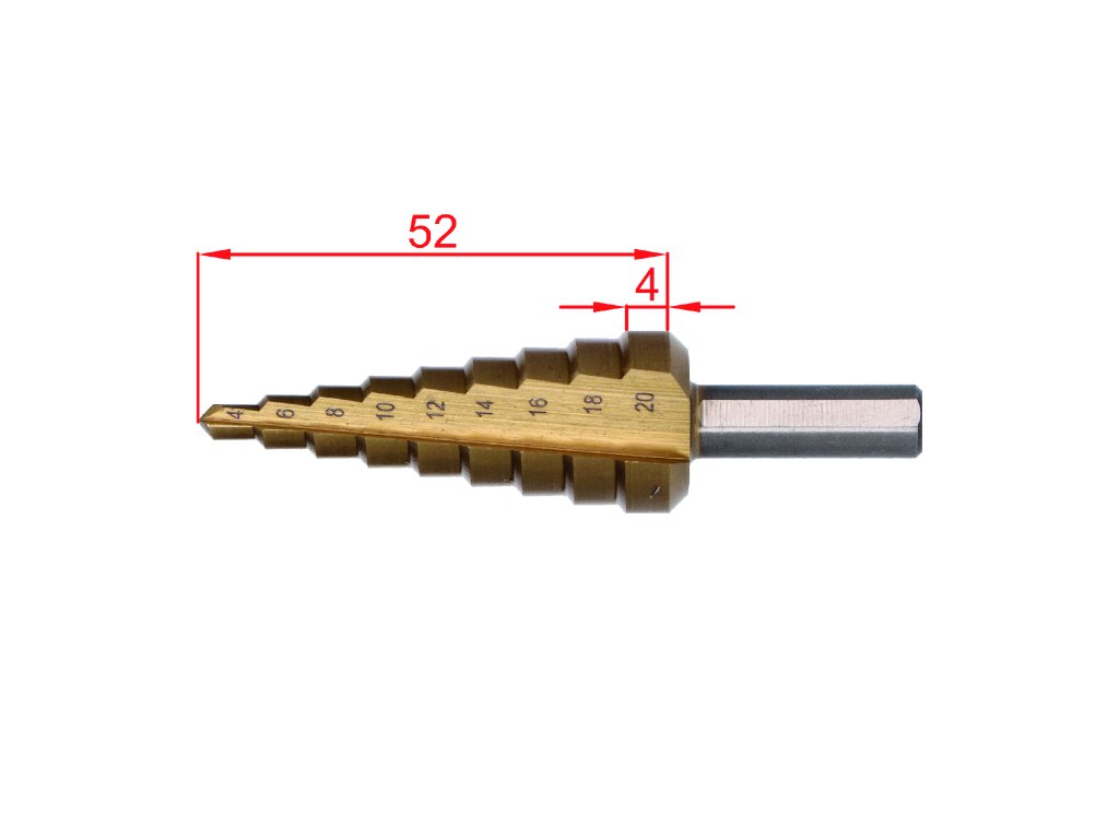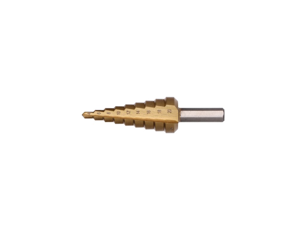 stupňovitý kužeľový vrták HSS M35 TiN 4-20, 3 ploché bočné úchopy