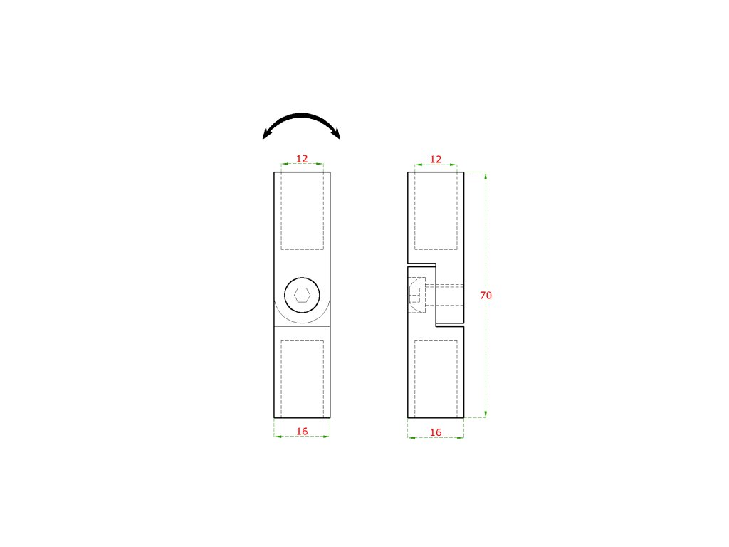 spoj nastaviteľný štvorcový (na tyč 12x12mm /L: 70mm), brúsená nerez K320 /AISI304Dodatočné parametre