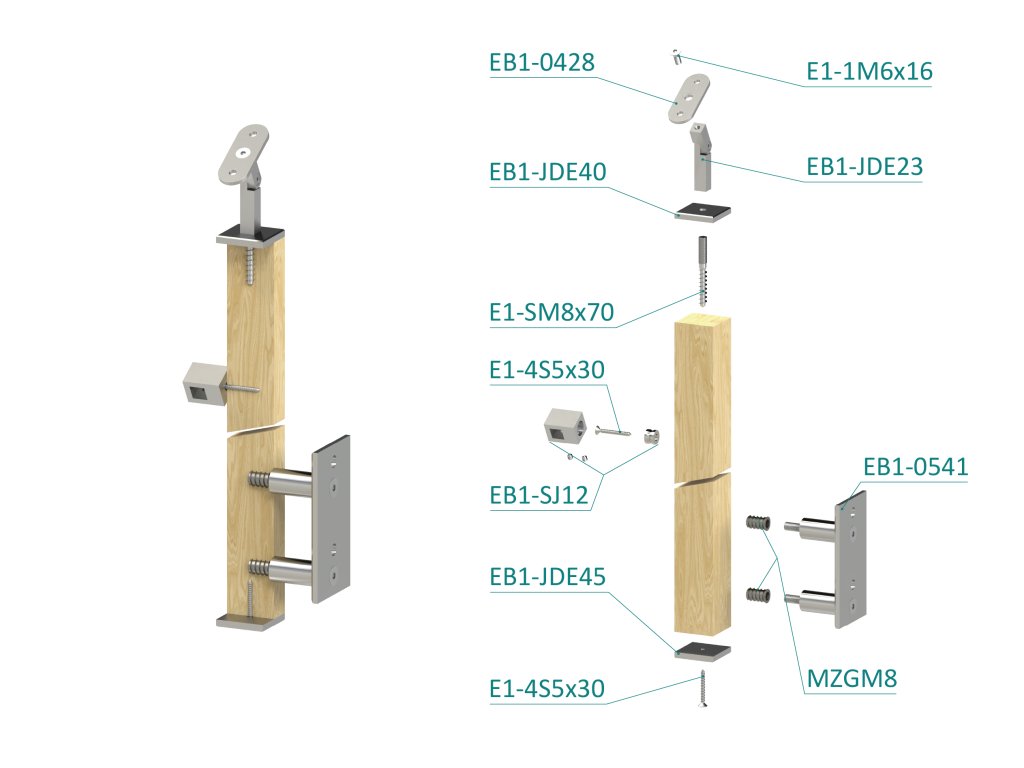 drevený stĺp, bočné kotvenie, 5 radový priechodný, vonkajší, vrch nastaviteľný (40x40mm), materiál: buk, brúsený povrch bez náteruDodatočné parametre
