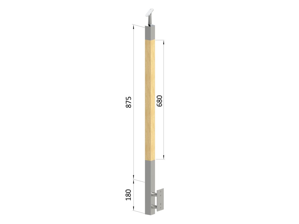 drevený stĺp, bočné kotvenie, bez výplne, vrch nastaviteľný (40x40mm), materiál: buk, brúsený povrch bez náteru