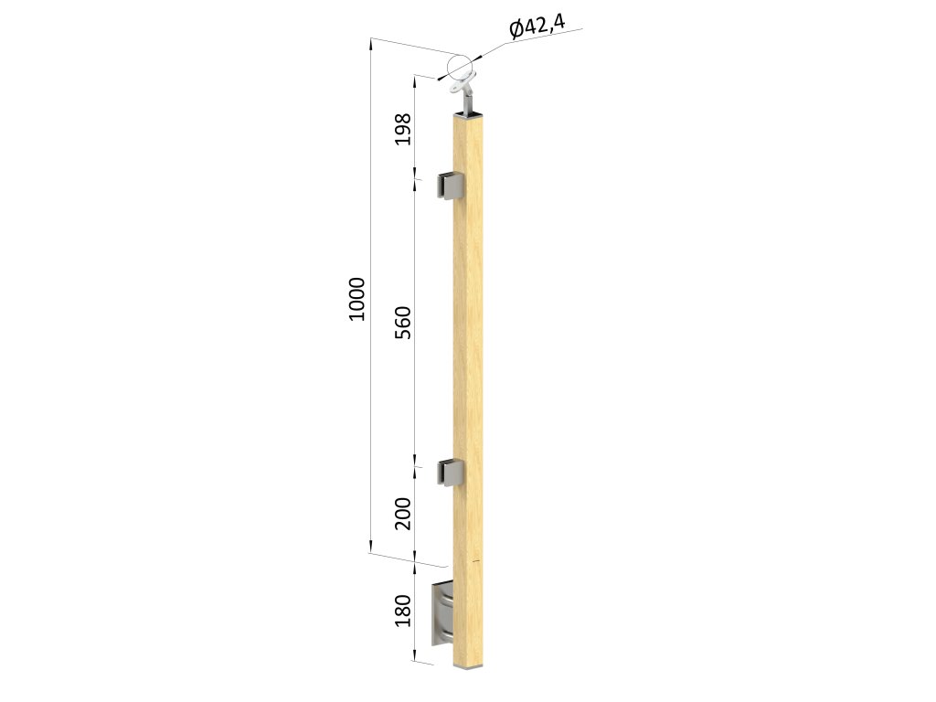 drevený stĺp, bočné kotvenie, výplň: sklo, koncový, ľavý, vrch nastaviteľný (40x40mm), materiál: buk, brúsený povrch s náterom BORI (bezfarebný)