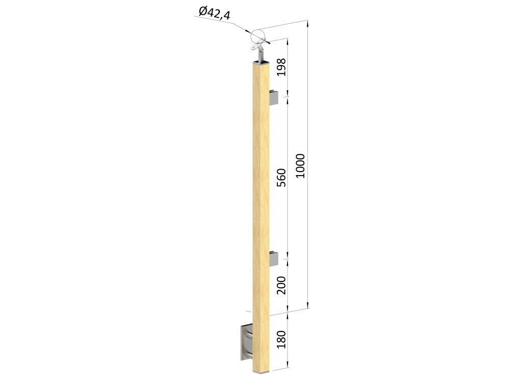 drevený stĺp, bočné kotvenie, výplň: sklo, koncový, pravý, vrch nastaviteľný (40x40mm), materiál: buk, brúsený povrch s náterom BORI (bezfarebný)Dodatočné parametre