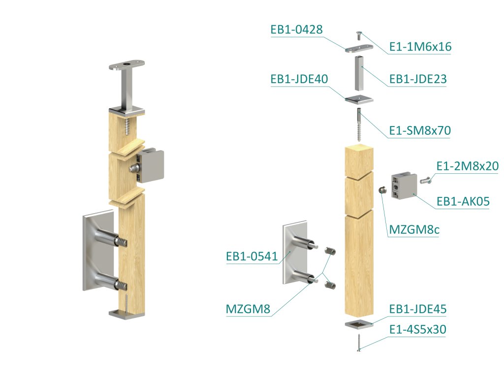 drevený stĺp, bočné kotvenie, výplň: sklo, koncový, pravý, vrch pevný (40x40mm), materiál: buk, brúsený povrch bez náteruDodatočné parametre