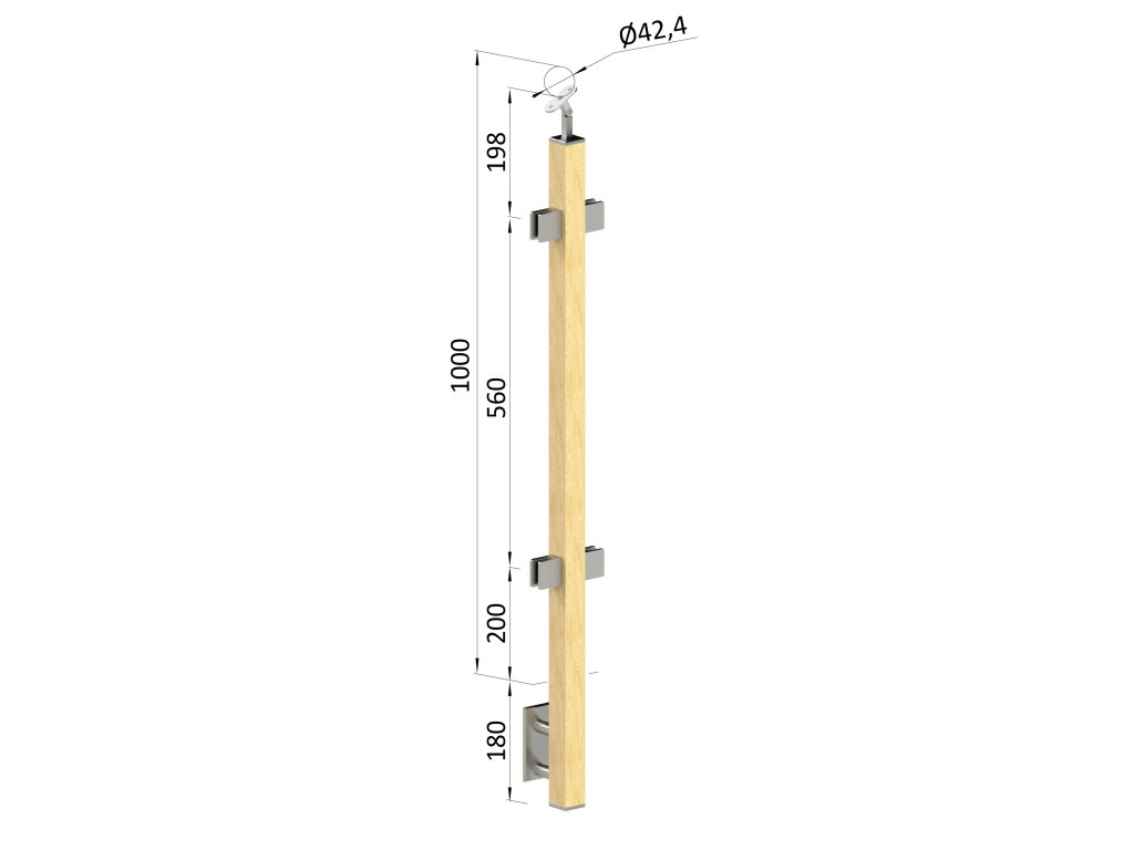 drevený stĺp, bočné kotvenie, výplň: sklo, priechodný, vrch nastaviteľný (40x40mm), materiál: buk, brúsený povrch s náterom BORI (bezfarebný)
