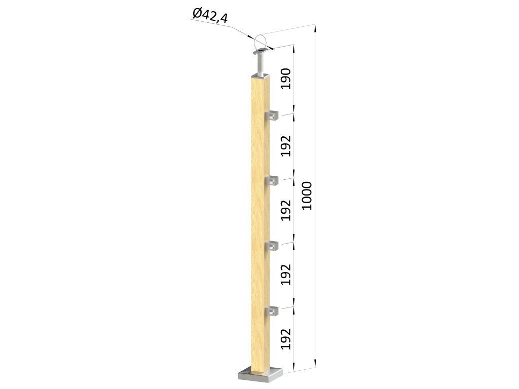 drevený stĺp, vrchné kotvenie, 4 radový, priechodný, vrch pevný (40x40mm), materiál: buk, brúsený povrch bez náteruDodatočné parametre